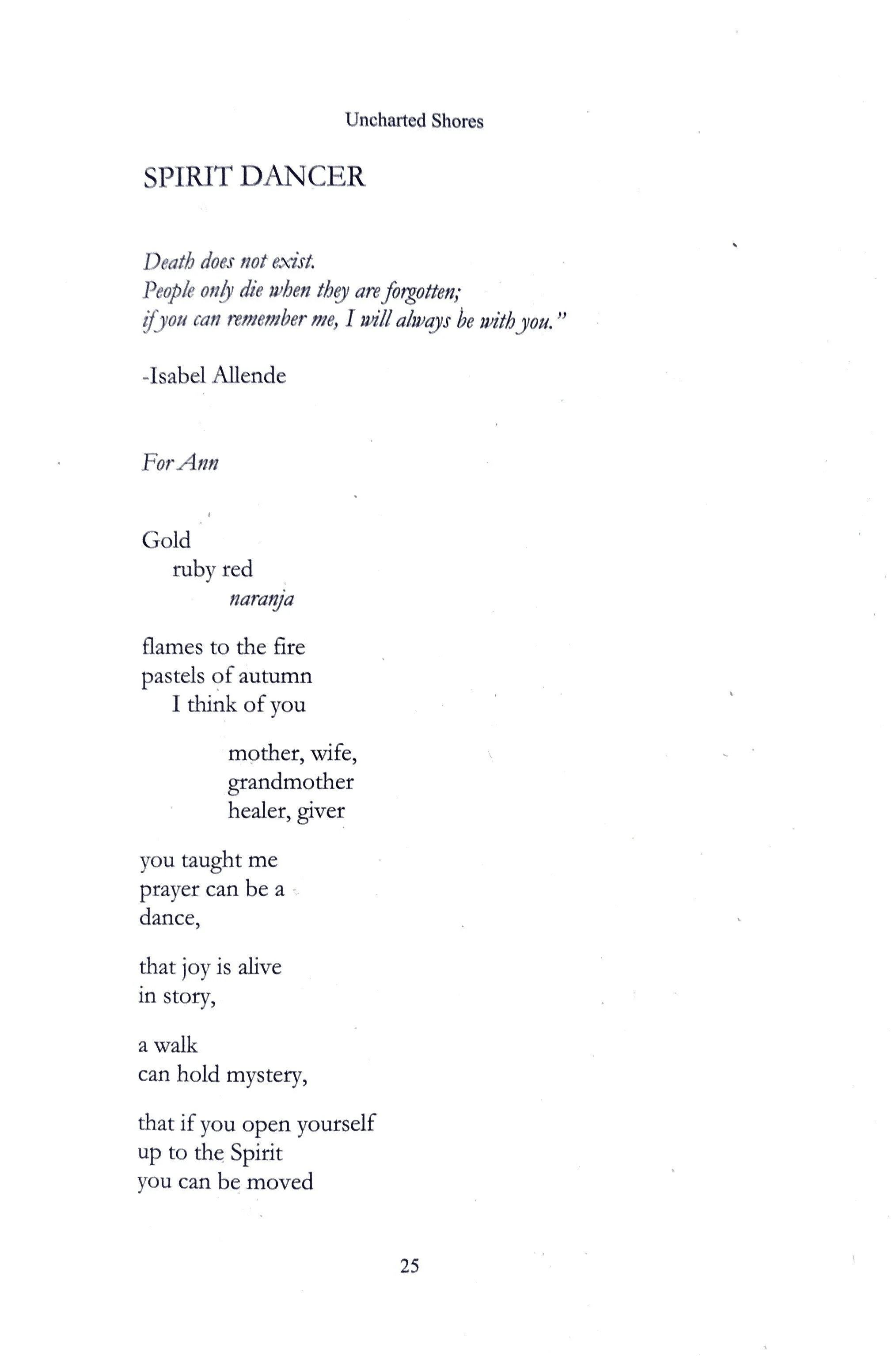 Ashley L. Malin recently published a collection of her poems, Uncharted Shores. Included is a poem that Ashley wrote in memory of Ann Schneider. This beautiful poem was offered by her mother, Sharon Loomis-Malin, at Ann’s Vigil Service. Ann was also among those named on the dedication page of Uncharted Shores. [August 2020]